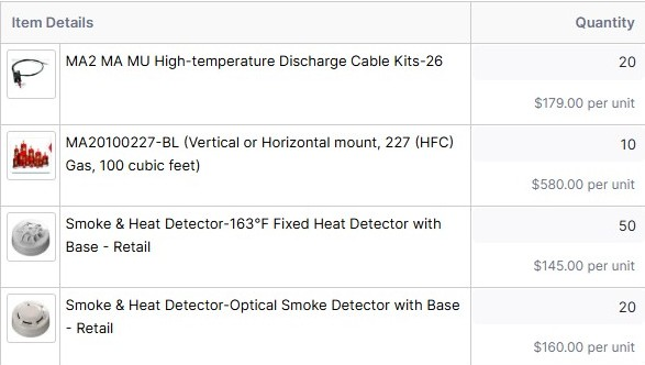 These are the items in the orig SAM solicitation 2125405B3000AE029. Shipping to a distance equiv of Portmsouth NH to Baltimore MD $500.